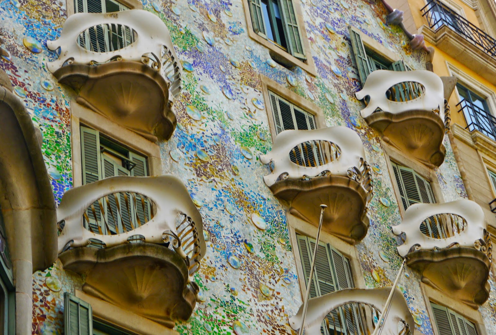 We began with the Casa Batlló. Mosaic-ed in opulent pastel tiles, the whole building looks like something out of a Dr. Seuss book.